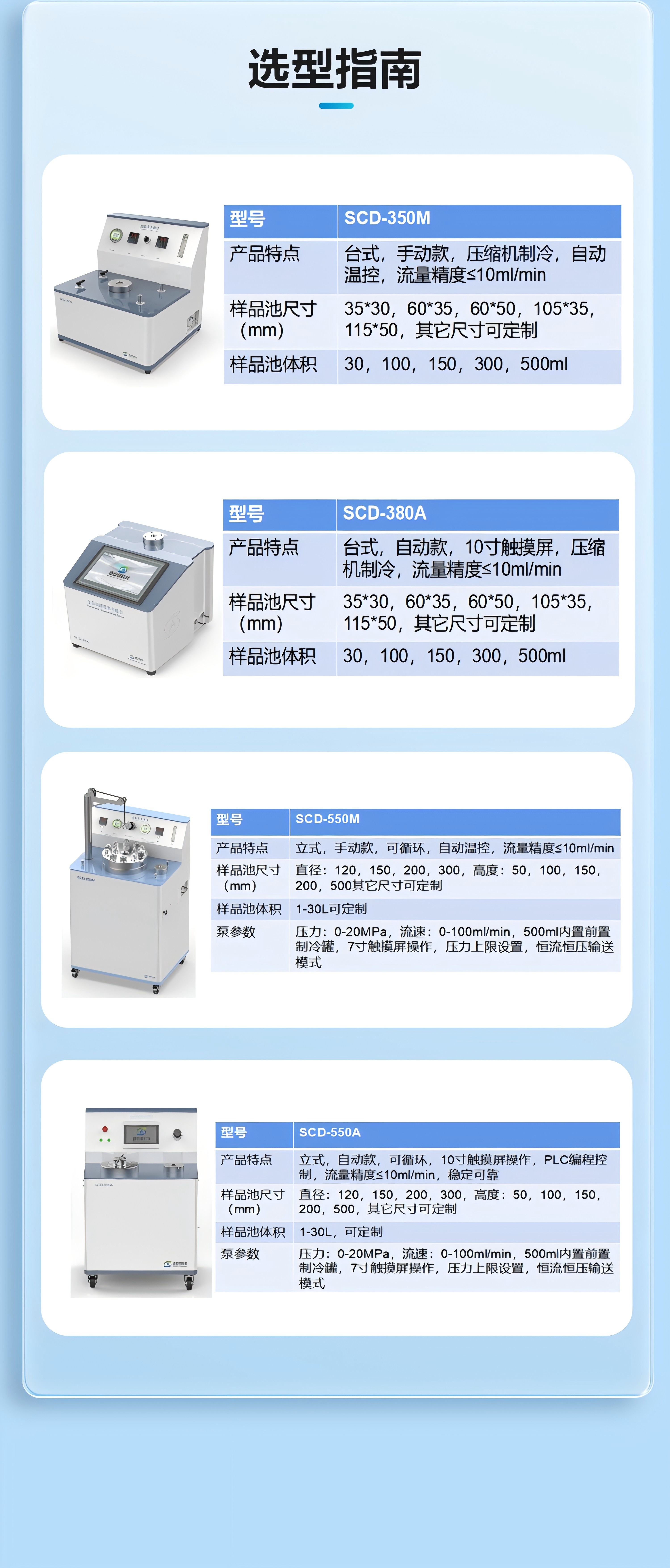 工作壓力范圍:0-20MPa,工作流速范圍:0-100ml/min,500ml內置前置制冷罐,7寸觸摸屏操作,壓力上限設置,恒流恒壓兩種輸送模式可選。
